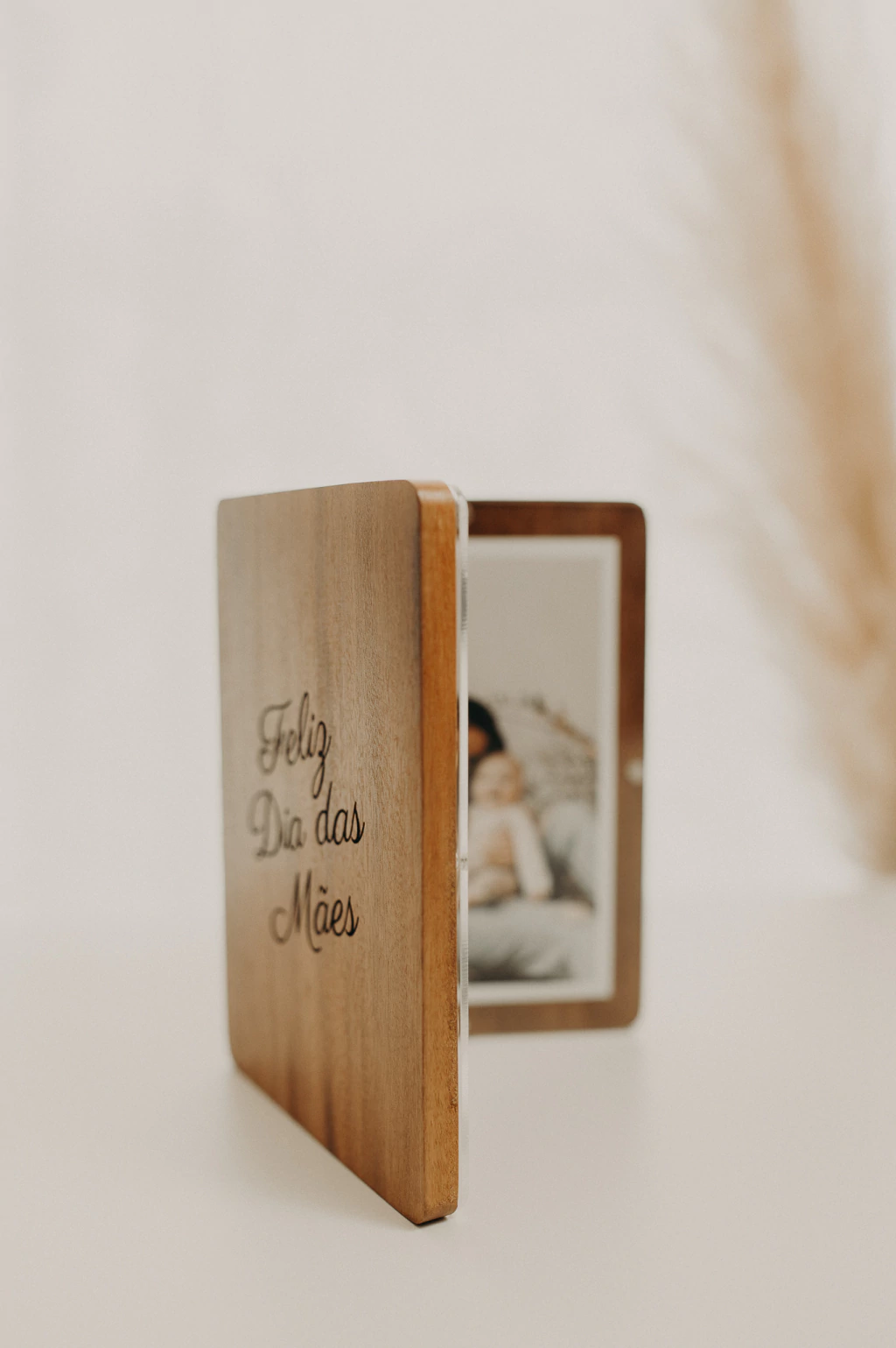 Material de qualidade: Feito com madeira de lei, o porta-retrato oferece durabilidade e um acabamento elegante que destaca suas fotos.